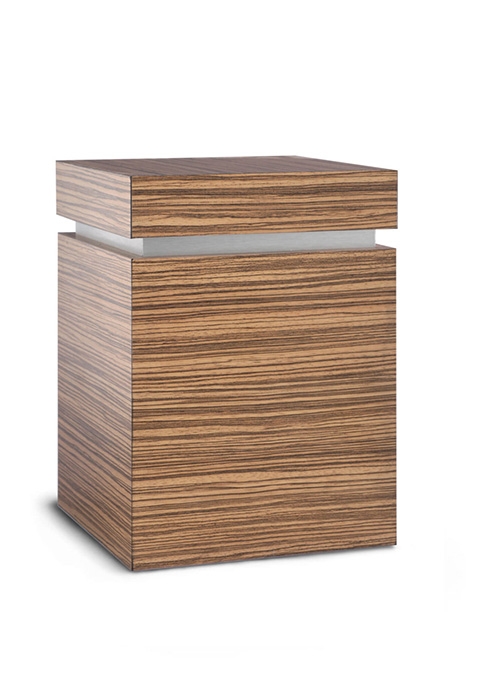 O design desta urna laminada de madeira para cinzas de cremação é caracterizado pela simplicidade e estilo contemporâneo com detalhes notáveis.